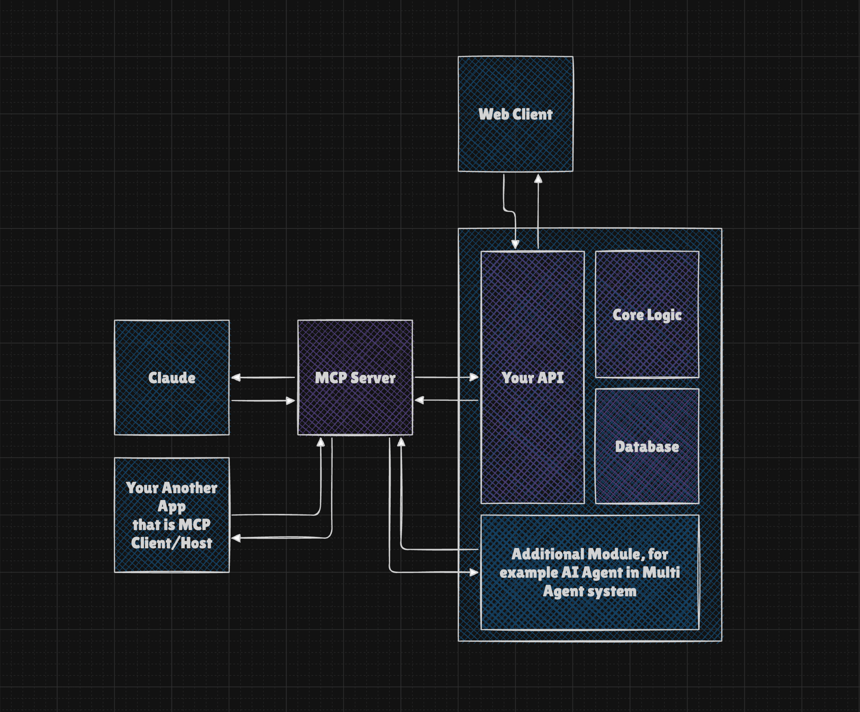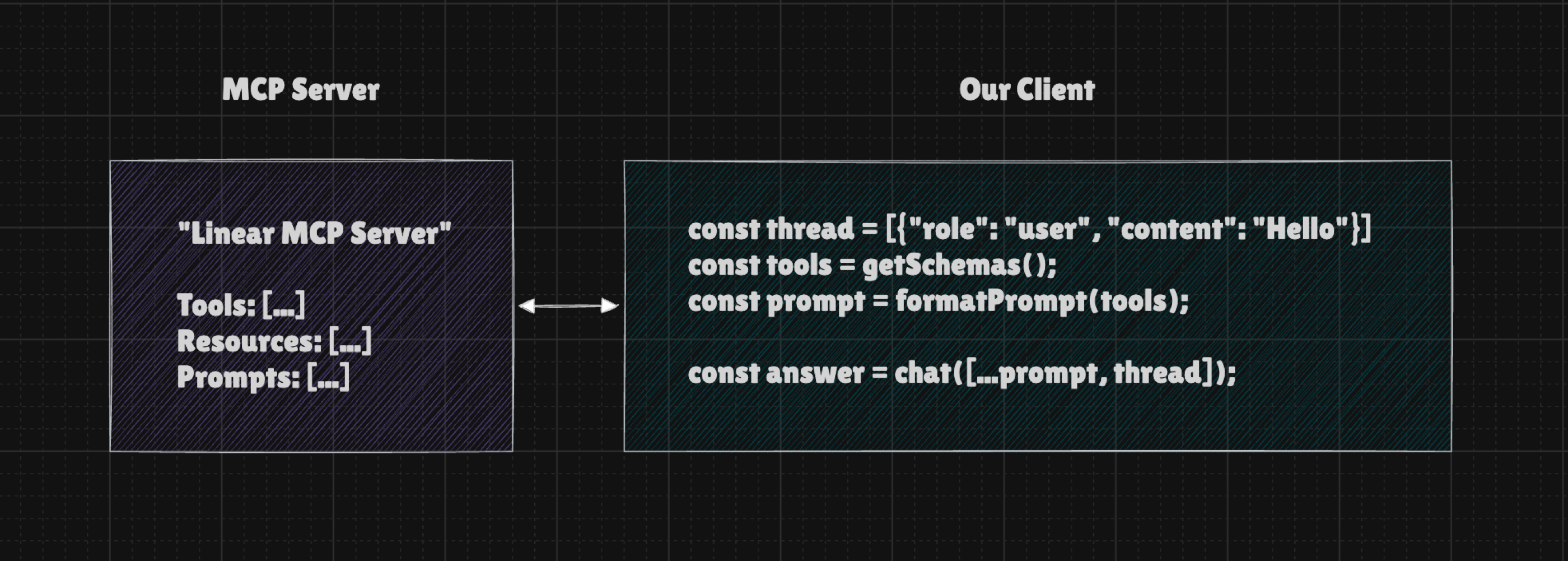 The MCP Server provides a list of tools (schemas) and offers the option to call their executors. This approach allows our core logic to remain unchanged, enabling us to easily connect additional servers to expand our app's capabilities.