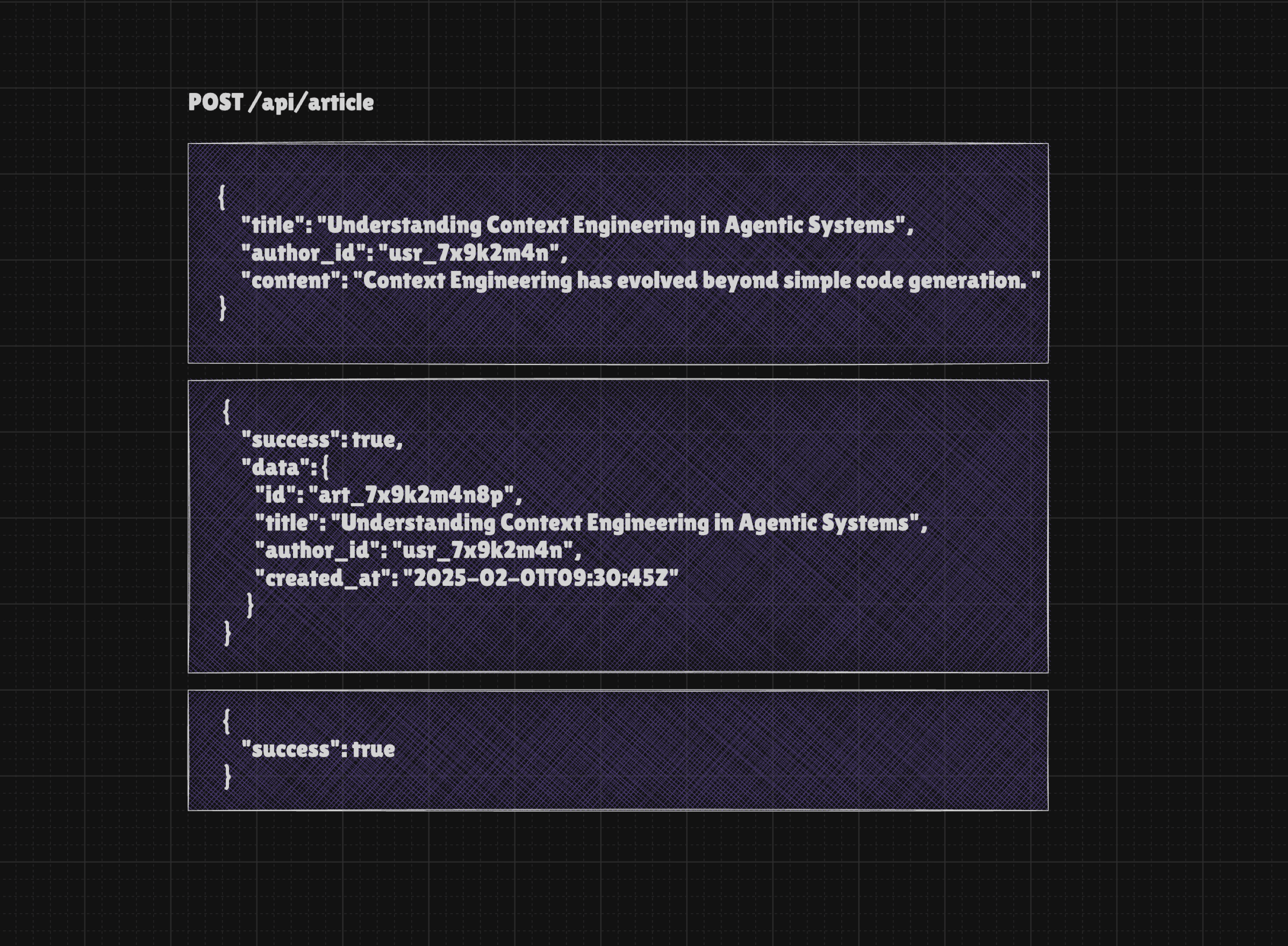 It is worth mentioning that we have API success responses similar to the example below, such as a simple "success": true. While this is acceptable from a code perspective, it is largely useless for an LLM. The problem is that many developers who work with Function Calling and MCP attempt to map their existing APIs 1:1. This logic is flawed because the original APIs were designed for programmers rather than LLMs. Although an LLM understands that a "success" value of true means the action succeeded, it is not enough to provide the user with valuable feedback, such as a link to a newly created entry.