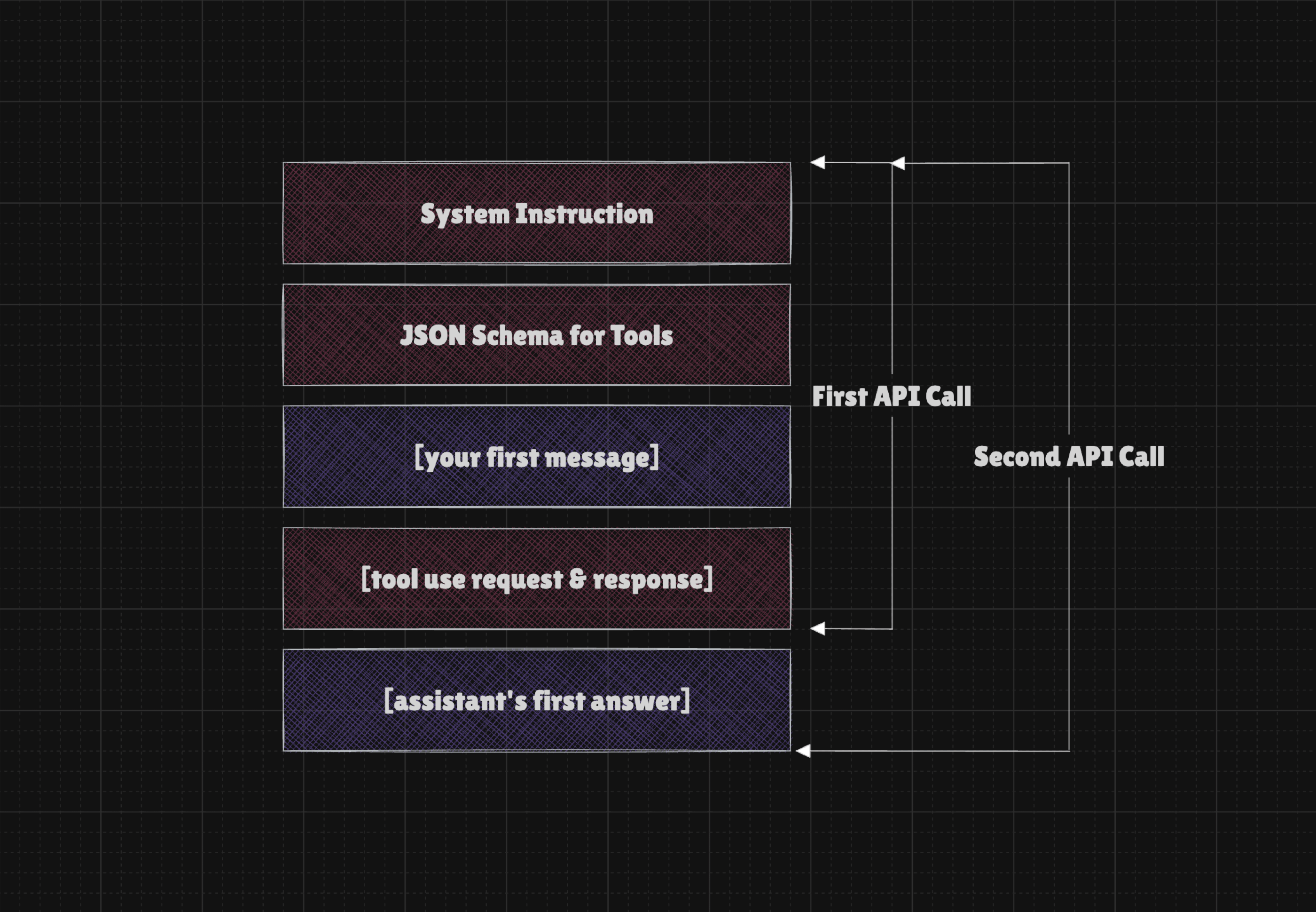 Since LLMs generate responses token by token based on preceding content, it means that calling an LLM within a loop requires us to submit the entire conversation and system instruction or at least the necessary context that will be enough for the model to decide on the next step.