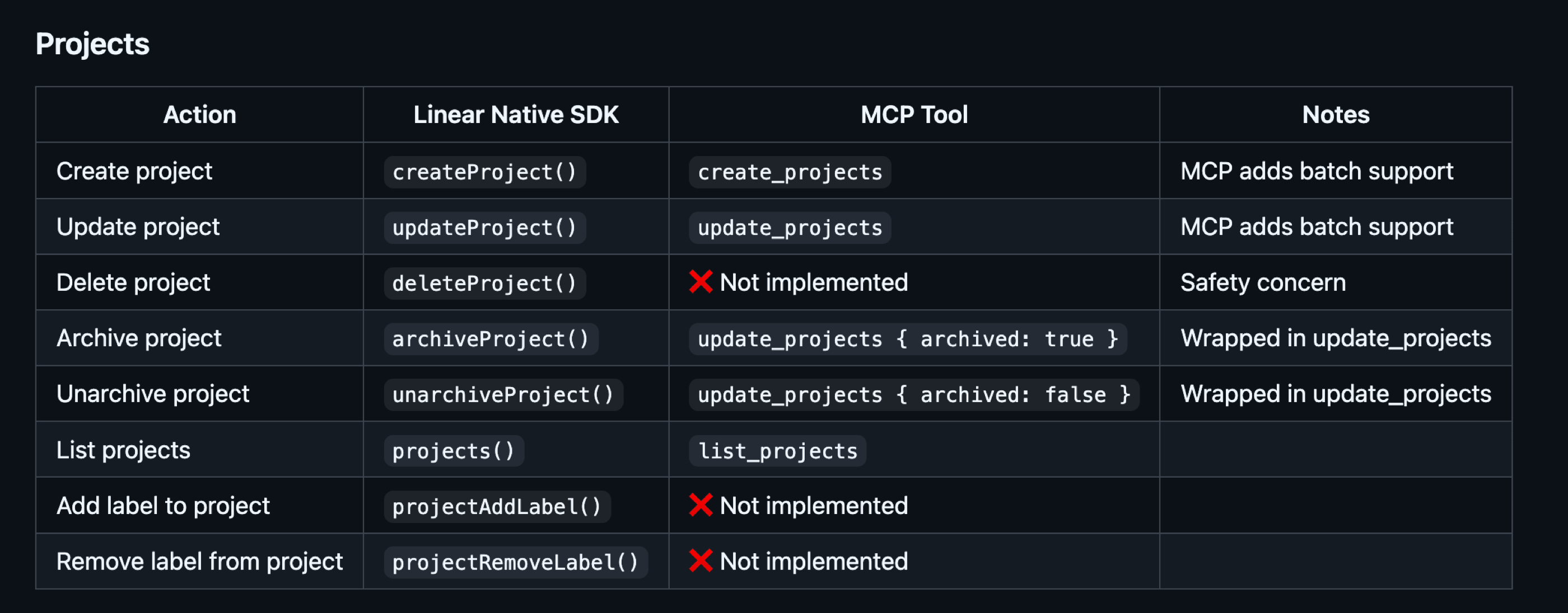 - Skip the endpoints that are rarely used or should not be available to the AI agent. For example, I do not want the agent to delete my projects in Linear, so I skip the related endpoints entirely. The same goes for actions such as adding a label, which happens so rarely in my case that I can easily do it myself. This also shows how the MCP can be customized to our needs. The fact that we can now generate entire MCP servers using LLMs makes even more sense, especially if we use them within our team.