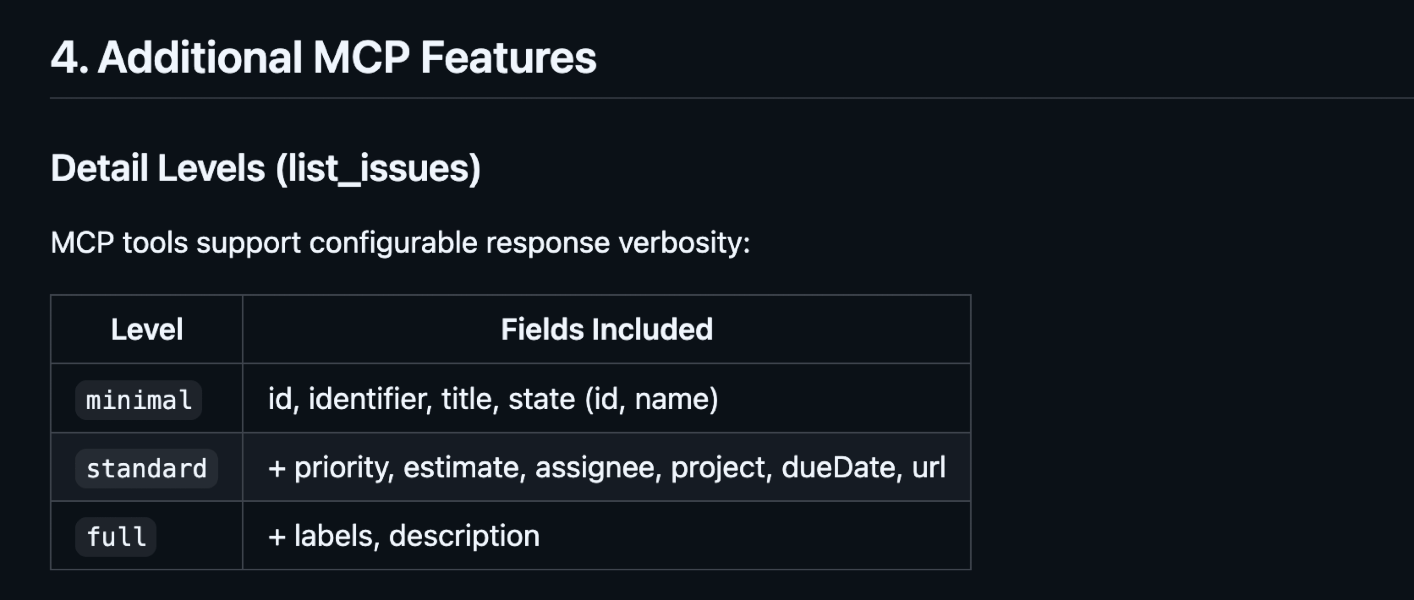 minimal/standard/full. As a result, the agent receives well-formatted, minimal information it can use for further work.